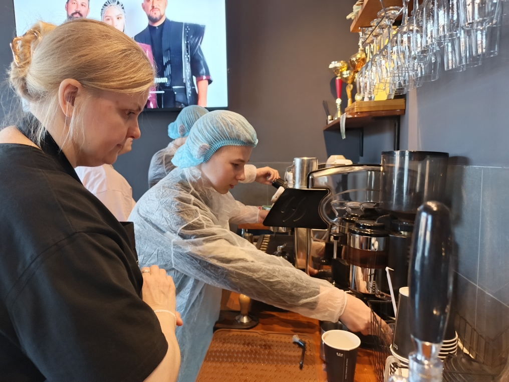 На втором занятии дети обыграли различные конфликтные ситуации «Бариста и клиент», учились правильно реагировать на претензии посетителей и быть эмоционально устойчивым.