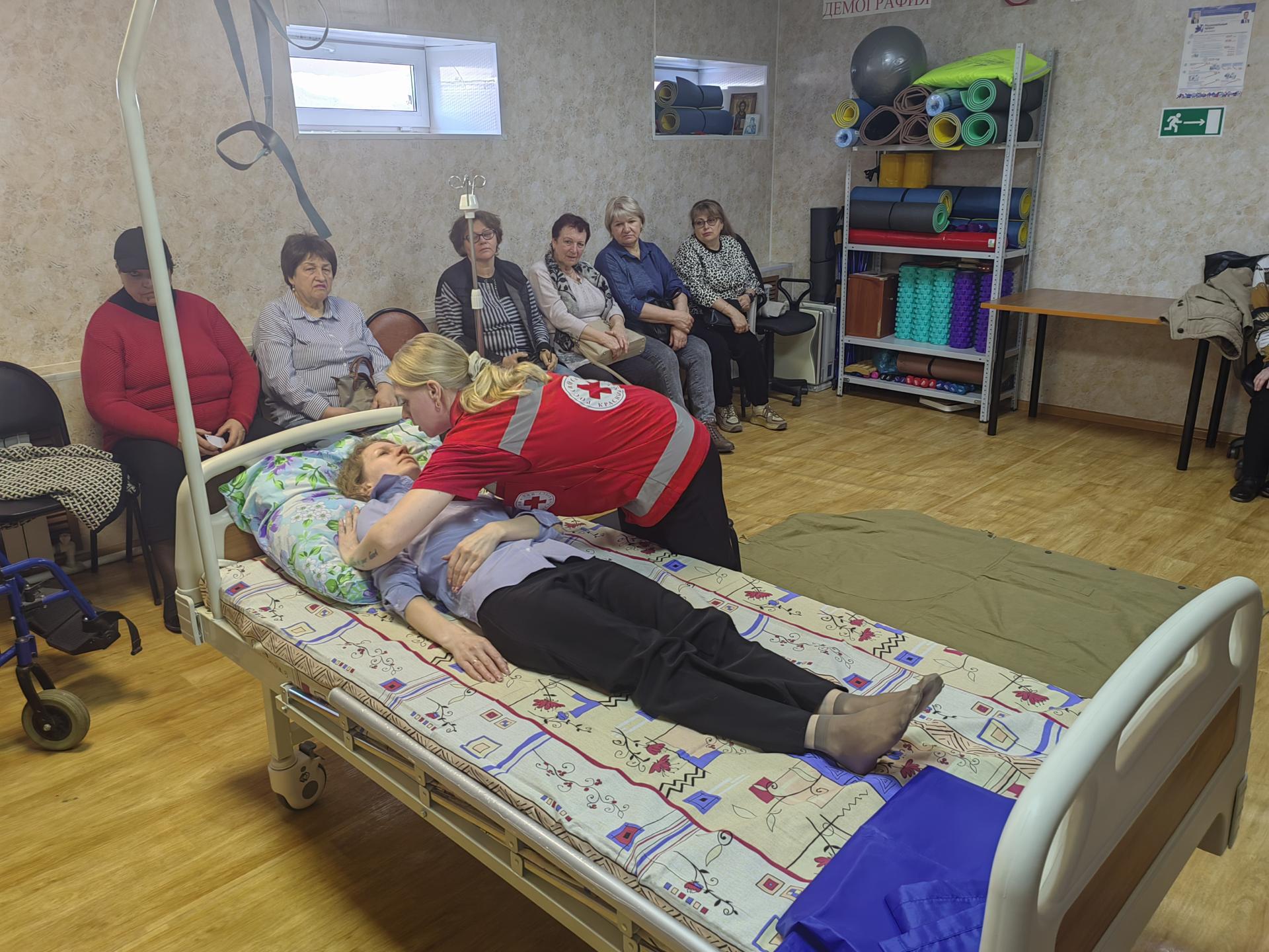 В ГБУСО ВО «Комплексный центр социального обслуживания населения Юрьев-Польского района» 25 марта 2026 года при поддержке ООО Российский Красный Крест было проведено групповое обучающие занятие для помощников, родственников по уходу по теме «Технологии безопасного перемещения маломобильных граждан». В ходе занятия состоялось обучение практическим навыкам и приемам ухода за ослабленными пожилыми людьми и инвалидами, методам профилактики и основным правилам предотвращения пролежней.