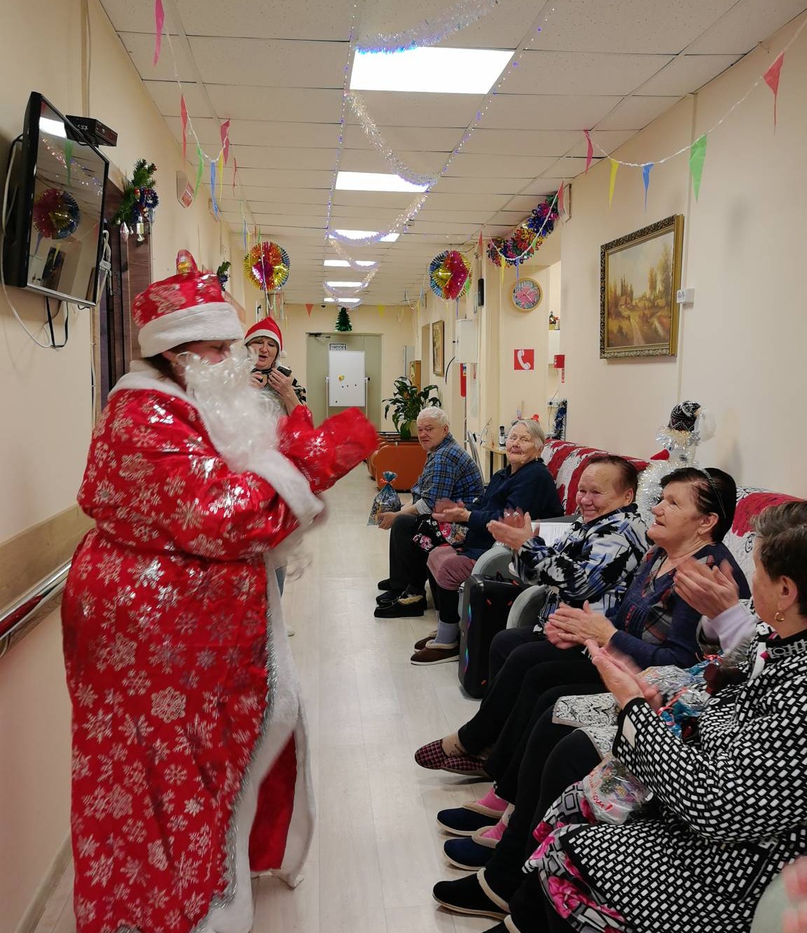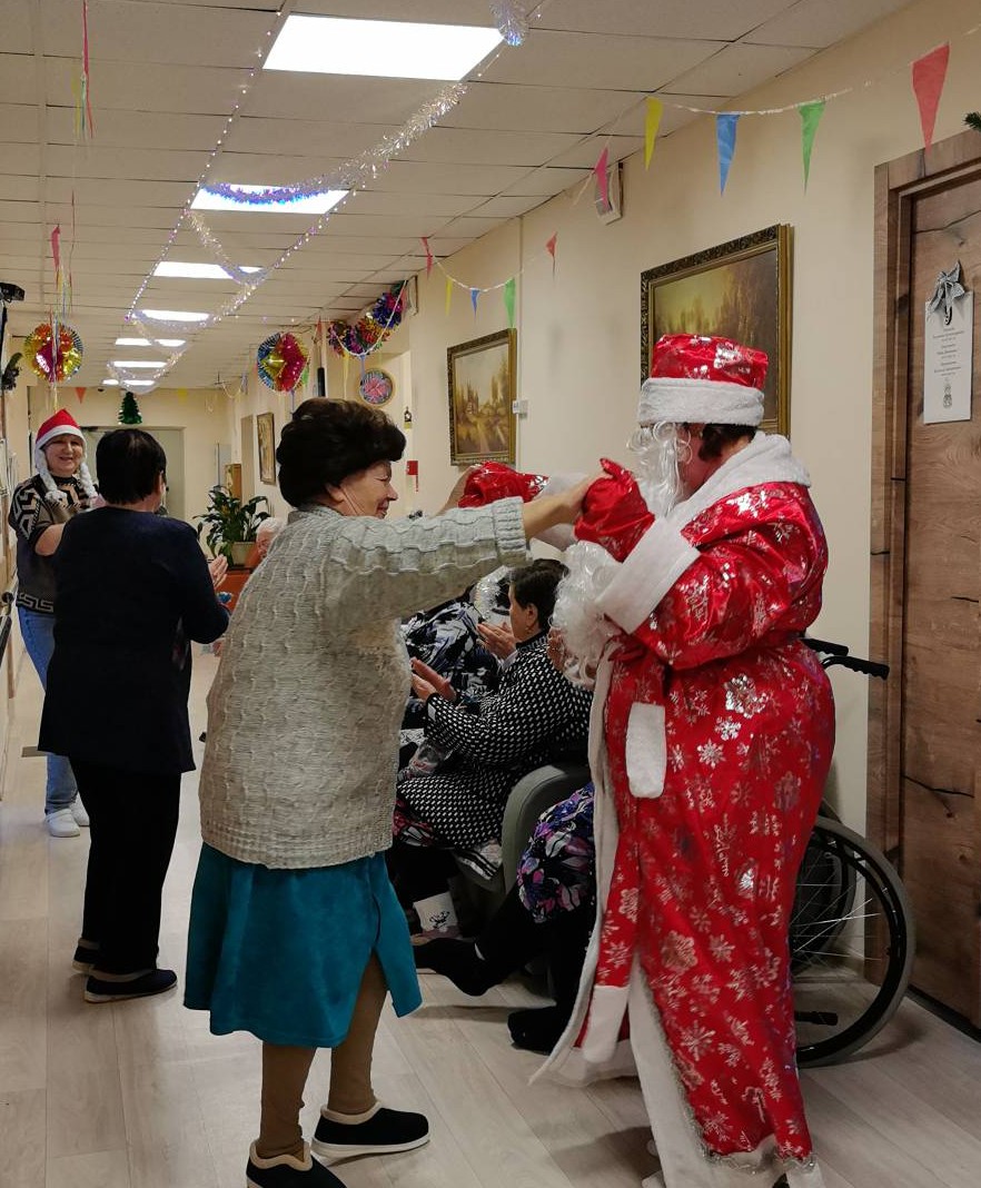 В отделении милосердия с. Небылое сегодня встретили Старый Новый год! Поздравления начались с веселой викторины. Наши проживающие с радостью участвовали в играх, многие с большим удовольствием подпевали знакомые песни и, конечно, танцевали под веселую, задорную музыку. Ну, и какой же Новый год без Деда Мороза!? Наш щедрый Дедушка Мороз ещё раз поздравил всех с Новым годом и подарил сладкие подарки.
