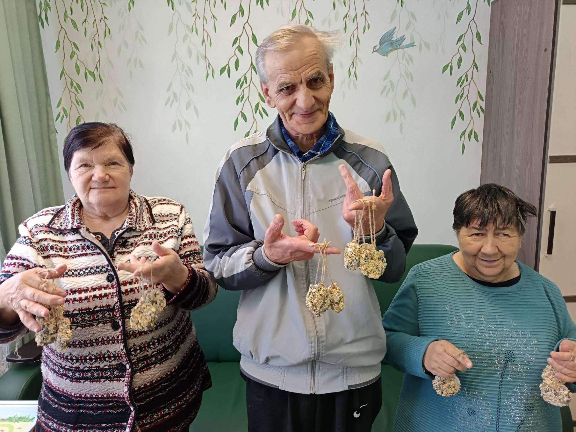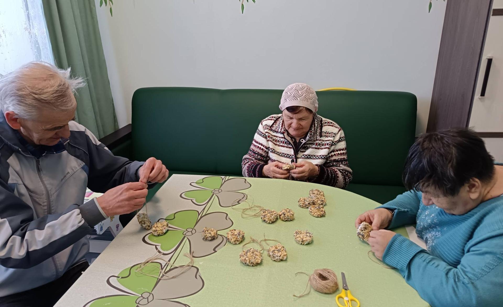 С наступлением зимы птицам становится сложнее находить себе пропитание. Проживающие отделения милосердия с. Небылое провели экологическую акцию «Покорми птиц зимой». Они собрали целую команду и сделали своими руками съедобные кормушки для птиц, похожие на печенье. В основу такого печенья входят: крупы, семечки, измельчённые орешки. Всё это всыпаем в желатин, залитый водой и хорошенько перемешиваем. Затем раскладываем массу по формочкам, и делаем небольшое отверстие. После