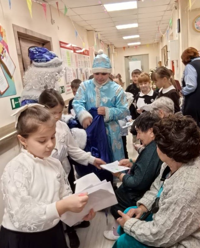 Концерт – это всегда ещё один повод улыбнуться и повеселиться, особенно в новогодние праздники. Для зрителей исполнялись новогодние песни, танцы. Сказочные гости праздника Дед Мороз и Снегурочка поздравили присутствующих с Новым годом, пожелали всем мира, добра, счастья и вручили подарки, сделанные руками детей. Персонажи напомнили, что праздники продолжаются.