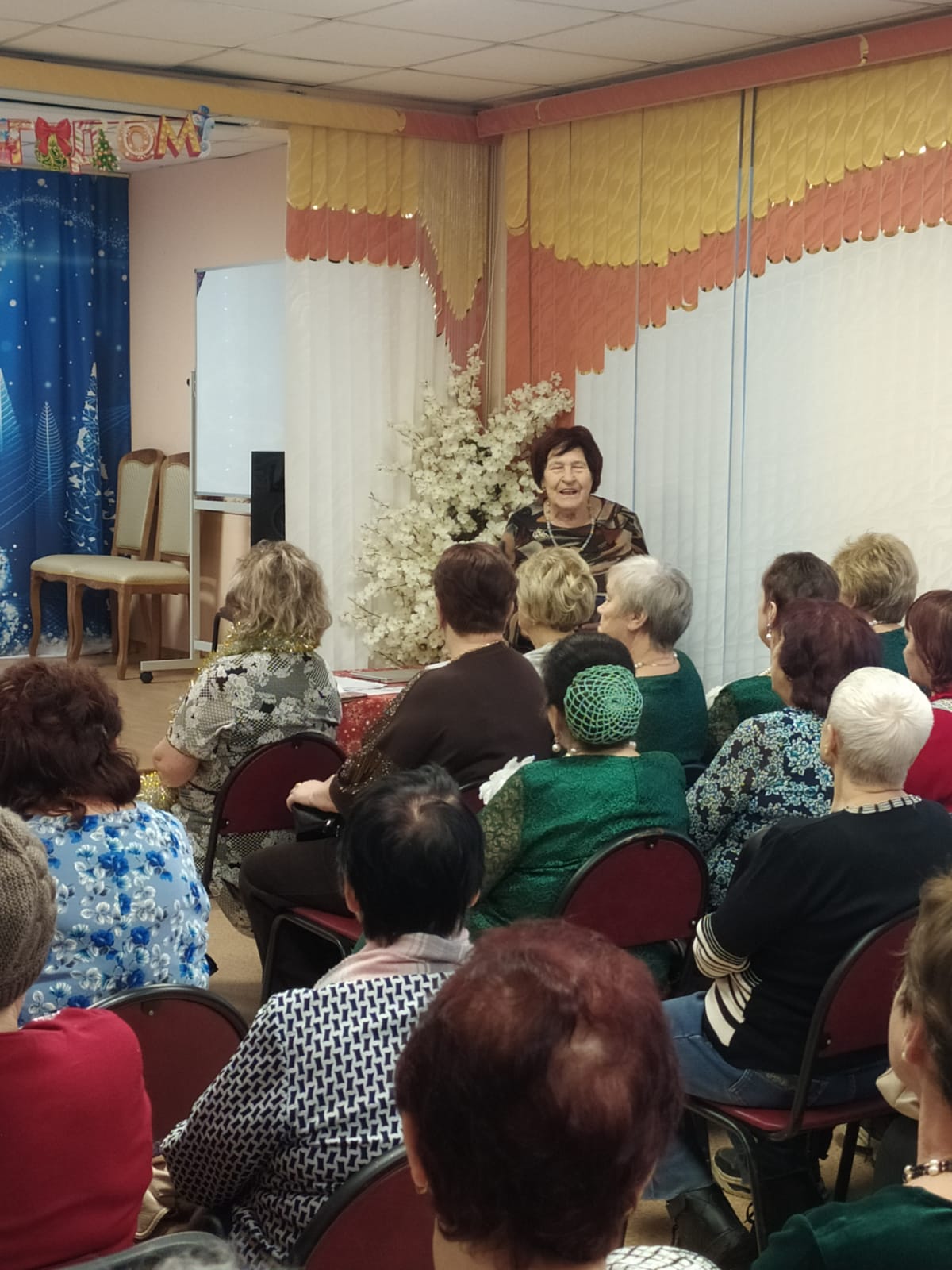 Торжественную часть открыла директор комплексного центра Опрышко Е. А., которая обратилась к гостям с тёплой поздравительной речью. Свои искренние пожелания также выразили Землизина А. И., - председатель Юрьев-Польской организации ветеранов войны, труда, Вооружённых Сил и правоохранительных органов и Куксина Н. К., - председатель Союза пенсионеров.