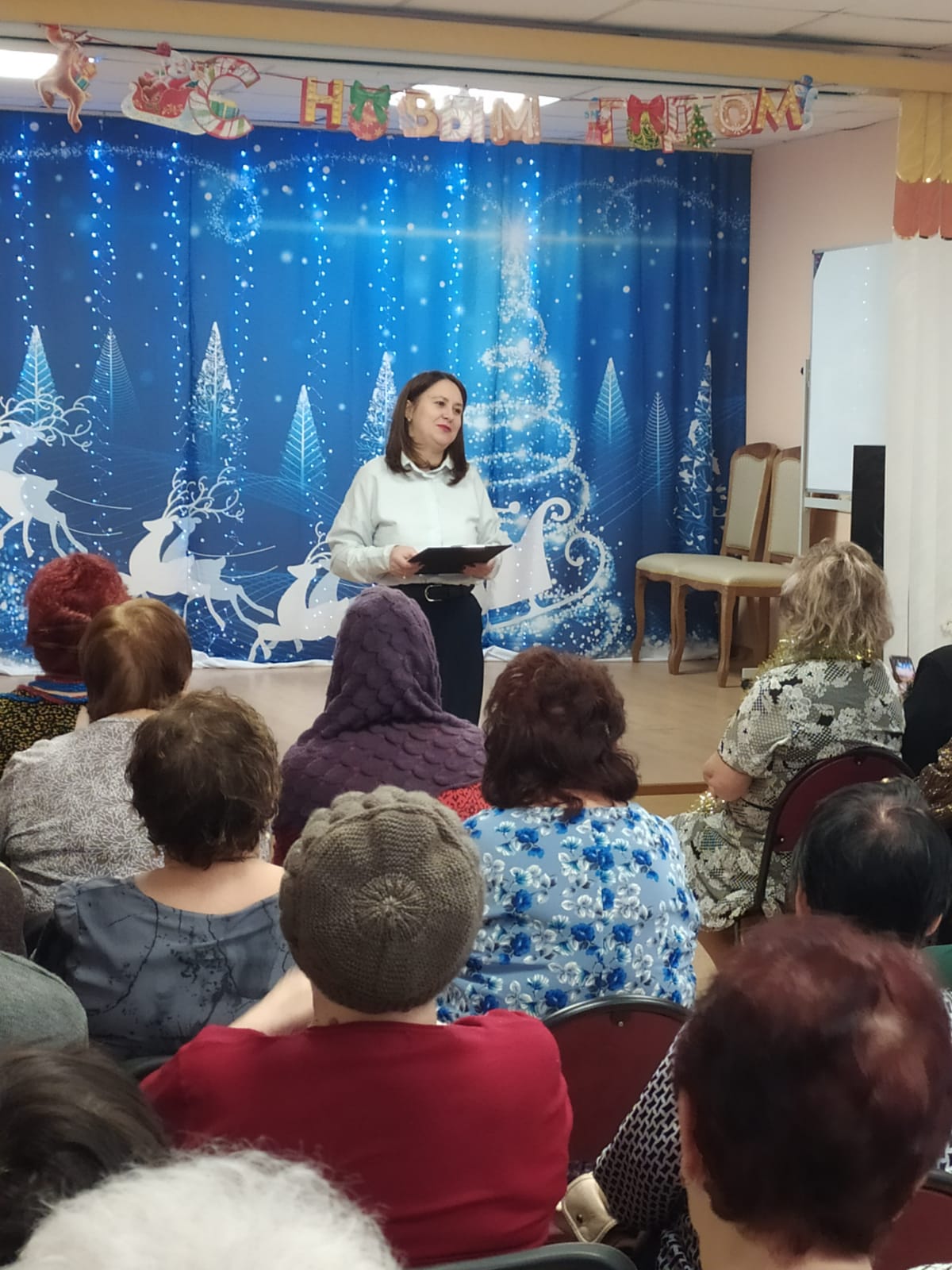 Литературную ноту в программе задали Белицкая В. И., прочитавшая стихотворение на новогоднюю тему и Нечаева Л. В., представившая «Монолог от Бабы Яги».