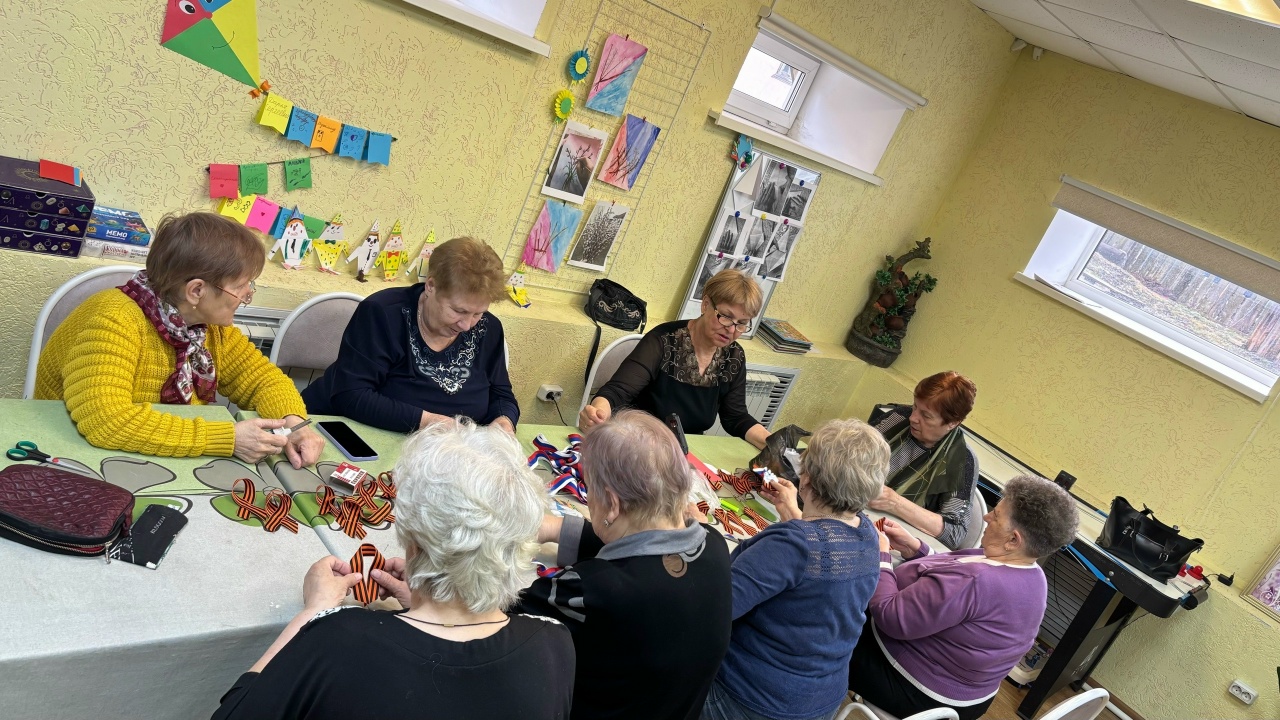 8 апреля 2026 года в рамках факультета «Рукоделие» слушатели «Университета третьего возраста» изготовили броши из георгиевской ленты к празднику Великой победы.