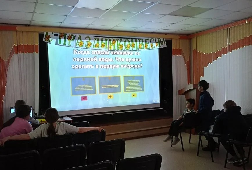 Сначала дети внимательно смотрели ролик, рассказывающий о правилах безопасности на льду, а затем приняли участие в онлайн-викторине «Безопасность на льду». Участники отвечали на вопросы, проверяя полученные знания.